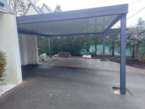 Carport grand format pour notre client : 5mx6m. Posé devant son garage, notre client peut ainsi garer sa voiture à l'abri et profiter de son garage comme lieu de stockage.