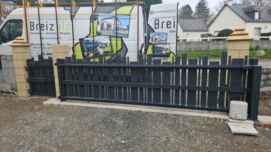 Pose d'un portail en aluminium avec son portillon. Le tout motorisé avec somfy. Une entrée de propriété sécurisée avec un style qui change de l'ordinaire.