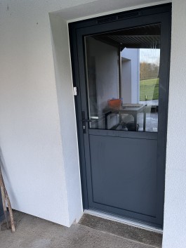 A l'arrière de la maison deux portes de service en aluminium également avec du double vitrage et un soubassement.