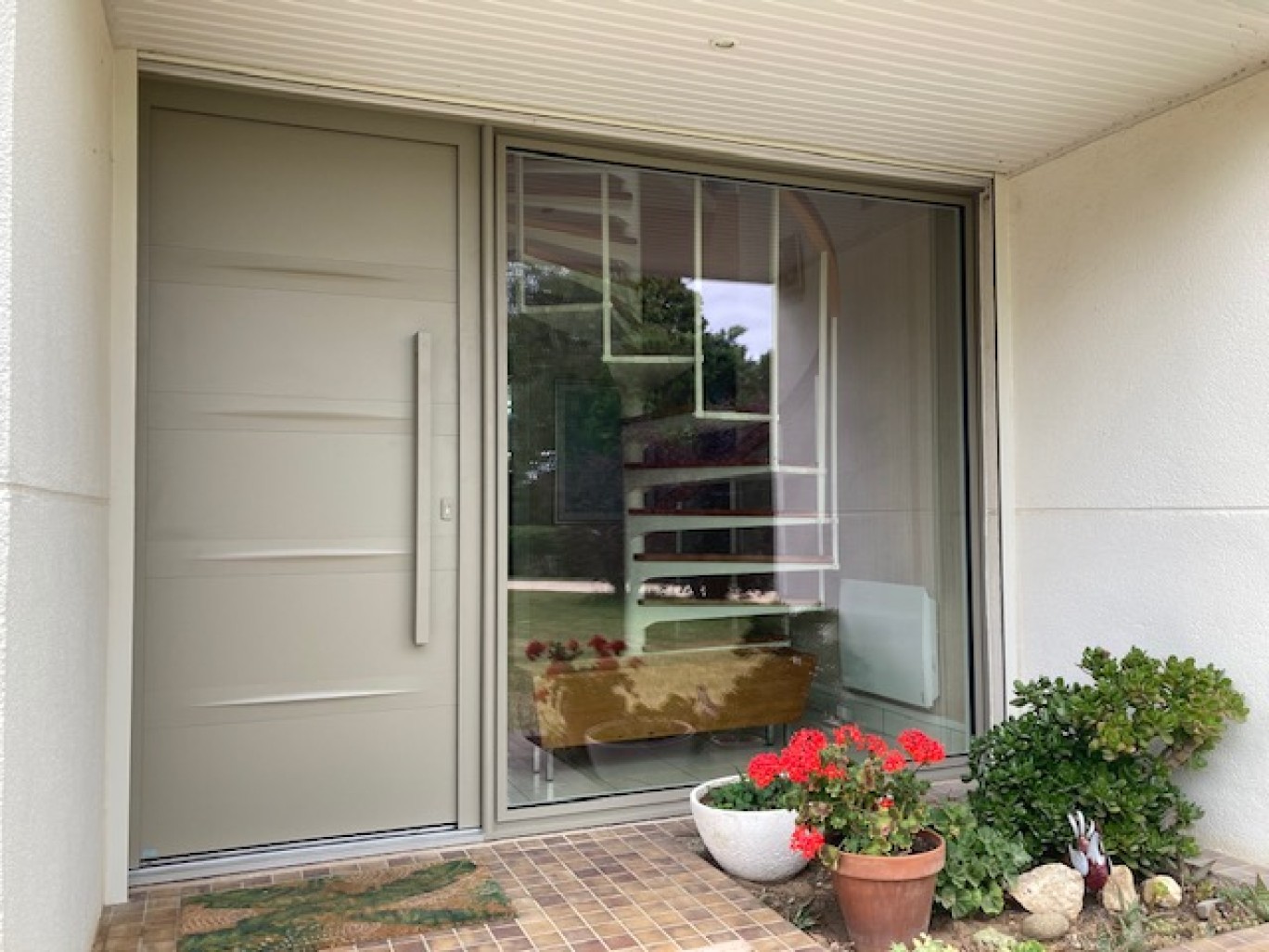Une porte d'entrée et des menuiseries changées, voilà de quoi donner un peu de fraîcheur chez notre client. Du double vitrage pour plus de protection et un choix bicolore pour l'esthétisme. Notre client est rassuré pour quelques années.