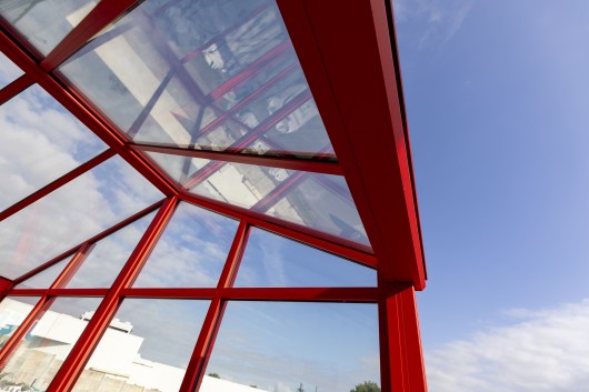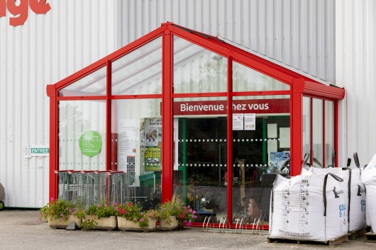Ici, nous sommes venus remplacer un sas d'entrée existant. Une structure en aluminium avec une toiture et des menuiseries en double vitrage securit clair.